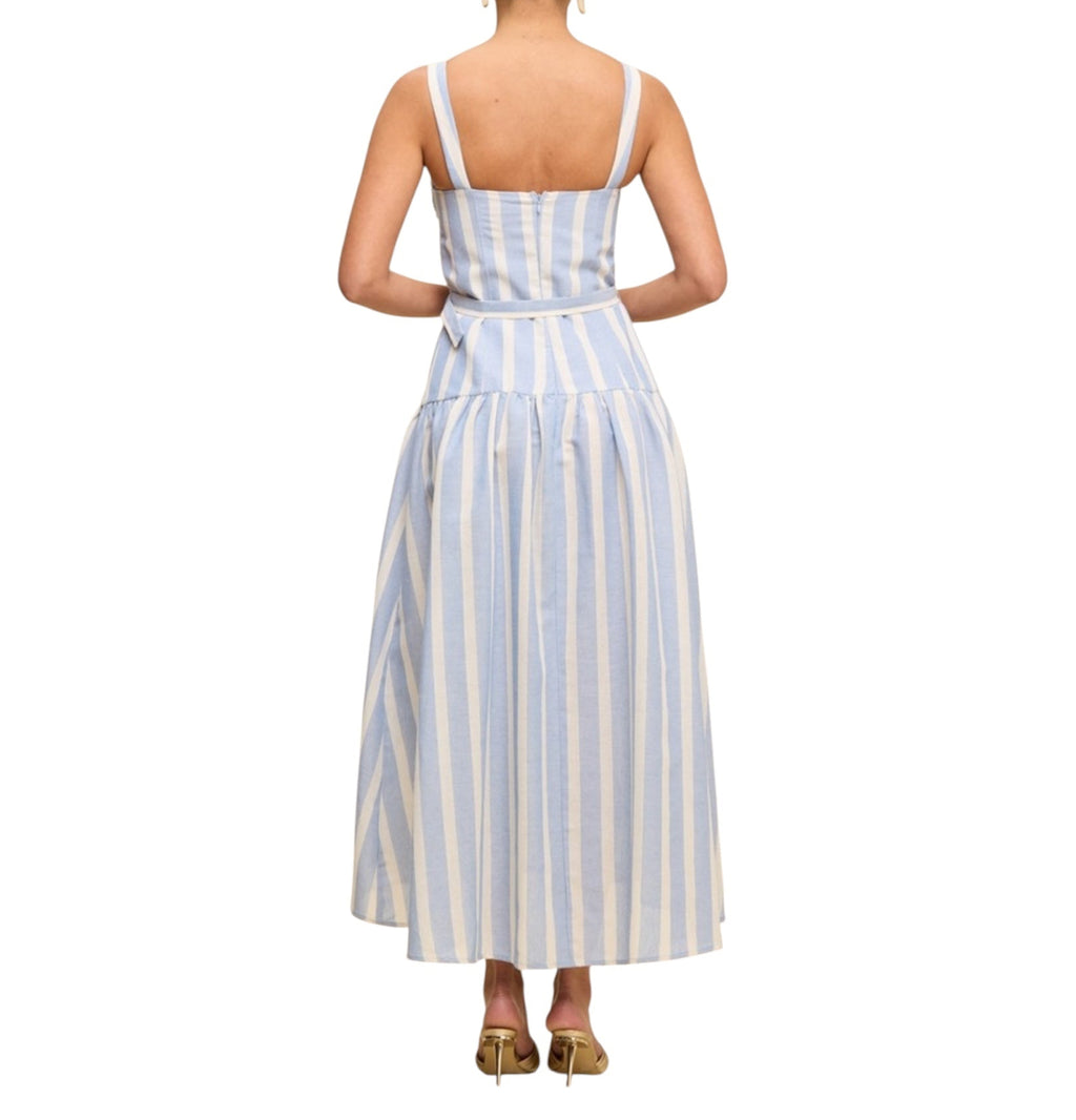 Linen Stripe Midi Belted Dress